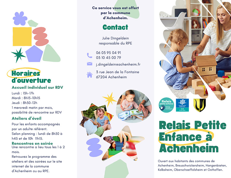 Pour tout renseignement sur les modes d’accueil, vous pouvez contacter le RPE :06 03 95 04 91 – j.dingeldein@achenheim.fr