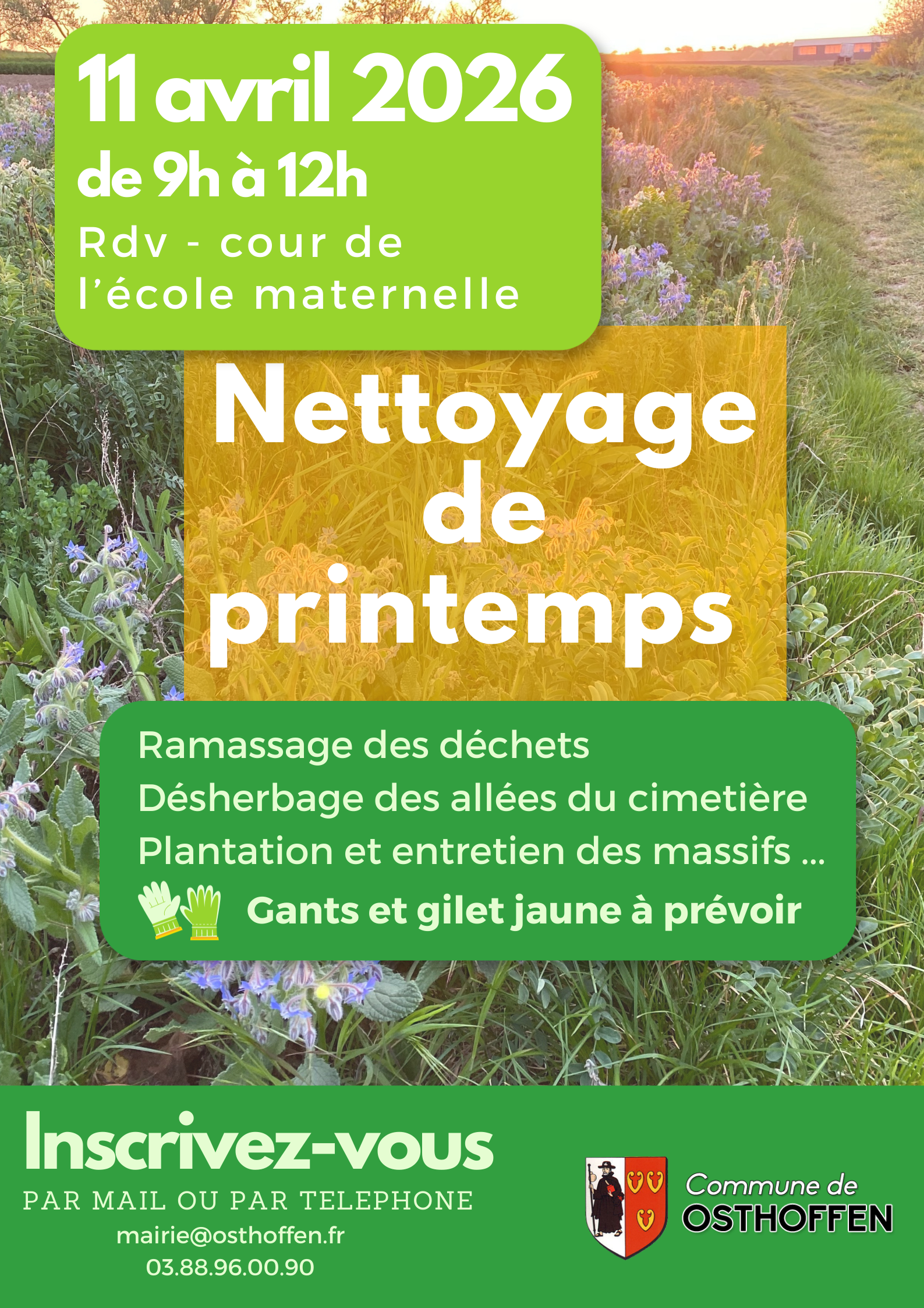 Inscrivez vous par mail (mairie@osthoffen.fr) ou par téléphone au 03.88.96.00.90 avant le 5 avril 2025.